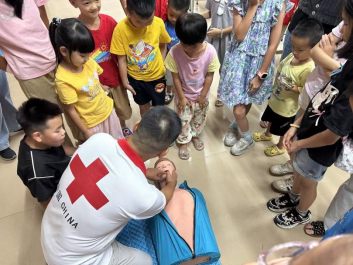讲师通过安全教育视频解析典型案例,带领孩子们逐条解读“防溺水六不准”,结合“同伴落水如何正确呼救”“陌生水域能否戏水”等情景问答,明确自防边界。开平市红十字会讲师重点演示心肺复苏(CPR)全流程,从环境安全判断到按压深度、频率把控,手把手纠正孩子们的实操动作,确保自救技能规范到位。